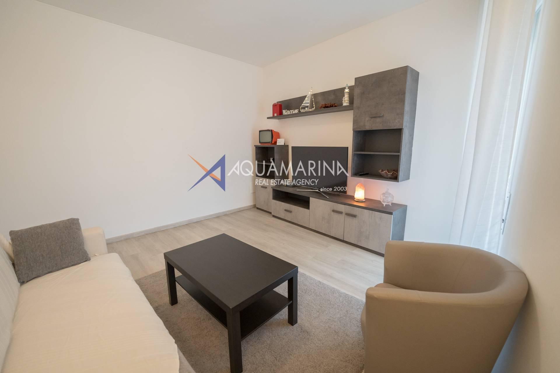einem geräumigen und hellen Wohnzimmer, einer separaten Küche, beide mit direktem Zugang zum Balkon mit freiem Blick und einem Meerblick, einem Badezimmer mit Fenster und einem gemütlichen Schlafzimmer.