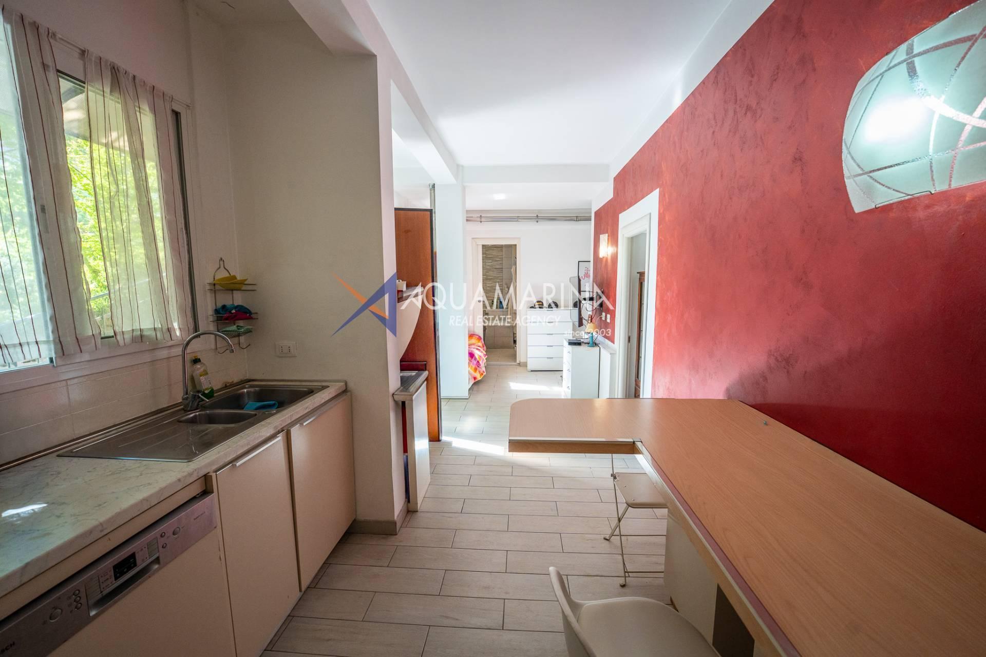 In Sanremo, nur einen Steinwurf vom Meer entfernt, bieten wir eine charmante Zweizimmerwohnung von 56 m² im Erdgeschoss eines zweistöckigen Gebäudes zum Verkauf an.