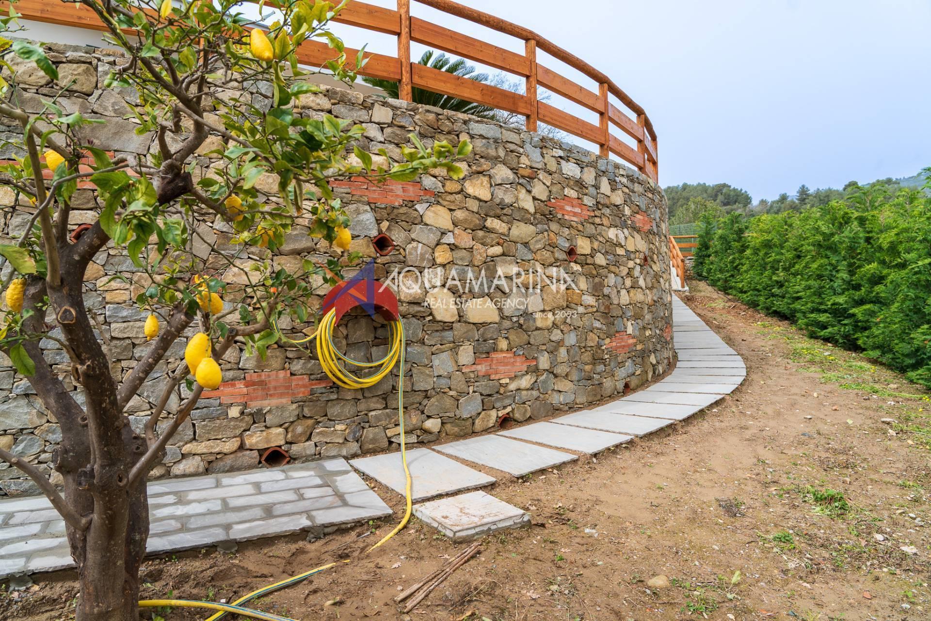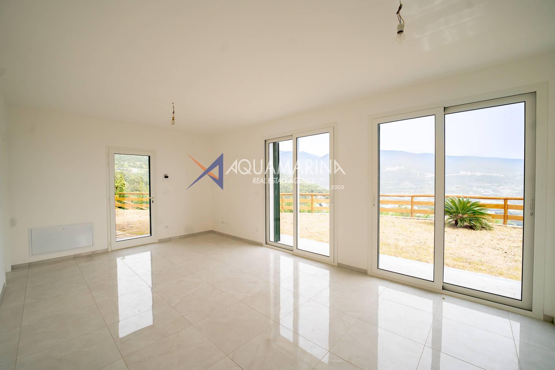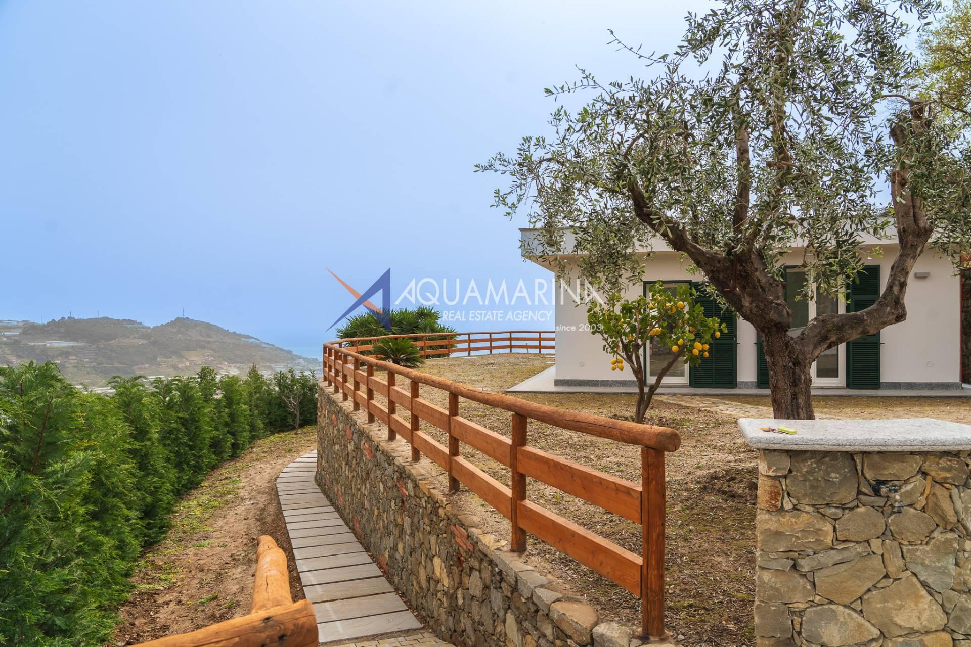 Taggia, in ruhiger Lage, wird eine neu gebaute Villa mit großem Garten und offenem Blick auf das Meer zum Verkauf angeboten.