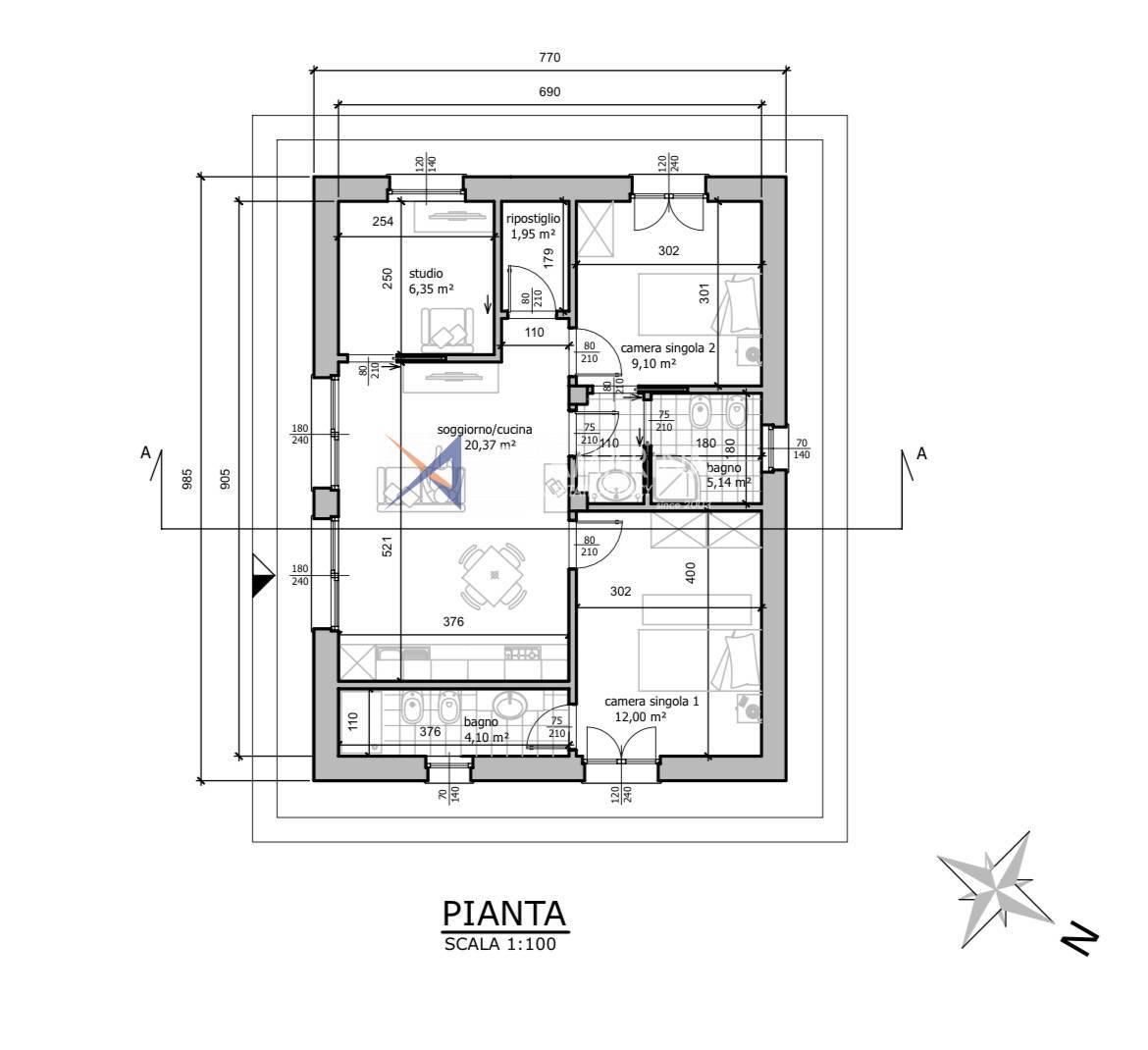 Die Villa ist wie folgt aufgebaut: offener Eingangsbereich zu einem Wohnzimmer mit offener Küche, ein Hauptschlafzimmer, ein zweites Schlafzimmer und ein Badezimmer mit einer Duschkabine; die Immobilie ist von einem großen Garten von 2000 Quadratmetern umgeben, der mit einem bewohnbaren Gartenpavillon mit Solarpanelen für Photovoltaik ausgestattet ist.