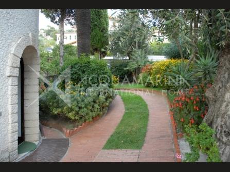 Villa inmitten eines großen und üppigen Gartens mit Palmen, Olivenbäumen und anderen einheimischen Pflanzen, mit sehr dichter Vegetation und einem Bach, der den Park durchquert. Im mediterranen Stil, 650qm mit über 5.000qm Garten. In der exklusivsten Gegend von Bordighera genießt es absolute Privatsphäre. Meerblick bis nach Montecarlo von der Terrasse.