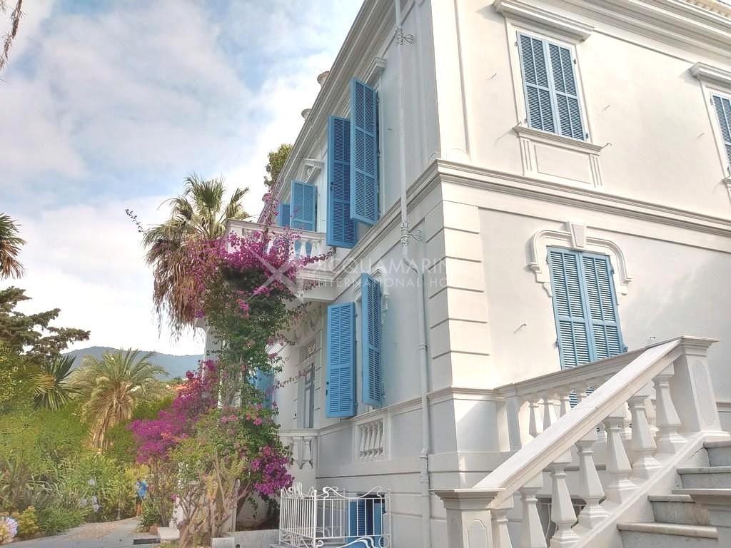 Ospedaletti, auf dem ersten Hügel, nicht weit vom Zentrum der Stadt Ospedaletti entfernt, bieten wir eine charmante, 600 m² große Villa aus dem frühen 20. Jahrhundert zum Verkauf an. Das Anwesen ist von viel Grün umgeben und bietet einen herrlichen Panoramablick. Das die Villa umgebende Grundstück ist ca. 2.000 m2 groß und makellos gepflegt.