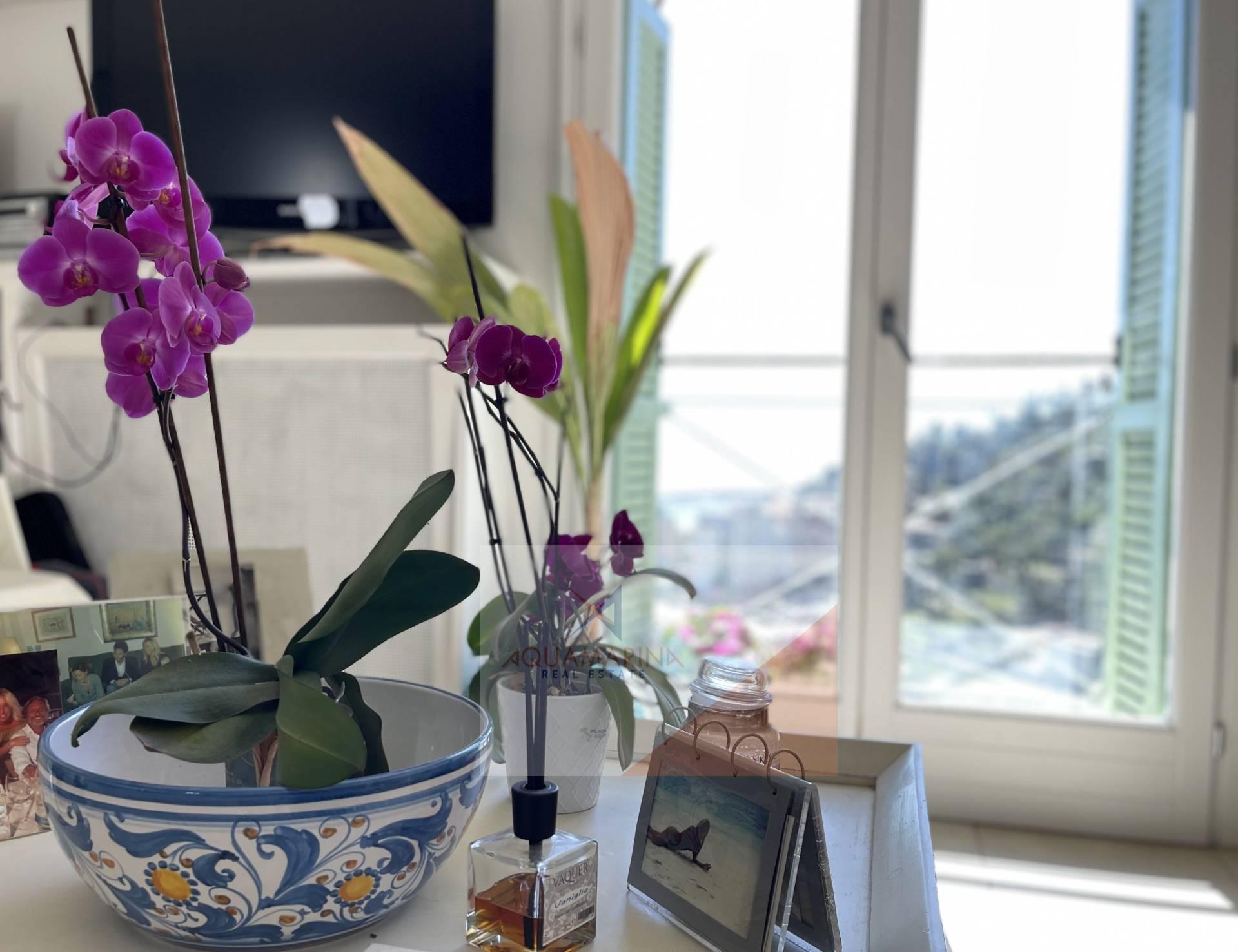 Schöne Wohnung von ca. 65 m2 in einer eleganten Wohnanlage, nur 200 m von den Stränden entfernt, gekennzeichnet durch einen herrlichen Meerblick und umgeben von einem üppigen, gepflegten mediterranen Garten voller Palmen, Blumen, Sukkulenten und aromatischen Pflanzen.