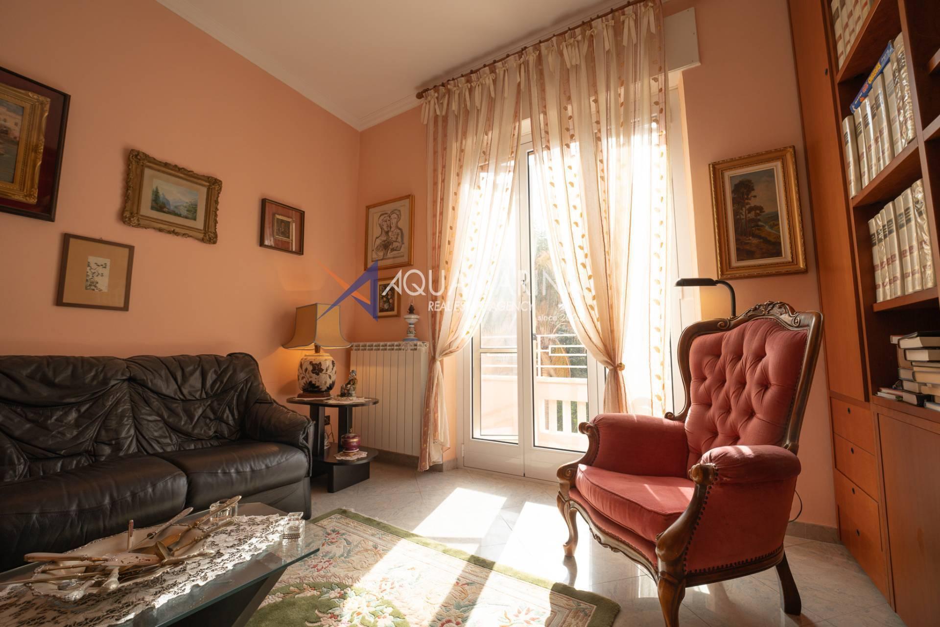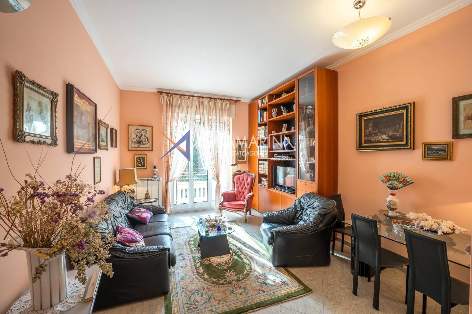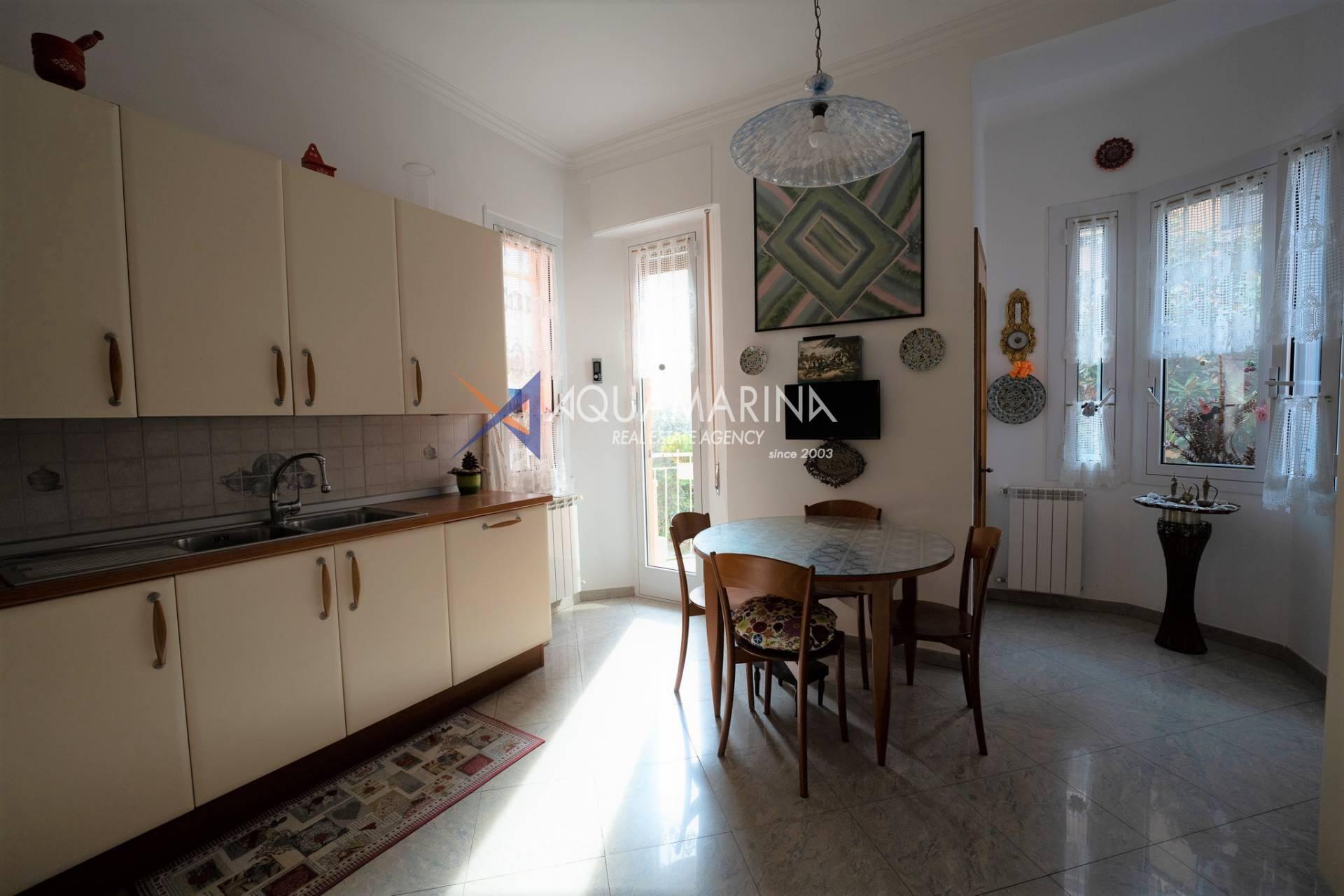 Bordighera verkaufen wir eine große Wohnung (ca. 100 Quadratmeter), nur wenige Schritte von der Hauptstraße und dem Meer entfernt.