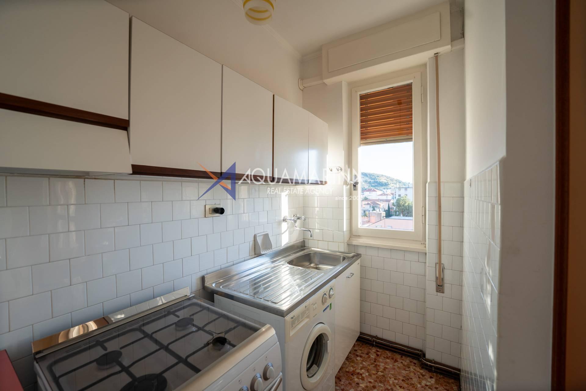 Die Wohnung befindet sich im sechsten und letzten Stock mit Aufzug, in einer der zentralsten Straßen von Arma di Taggia, nur wenige Schritte vom Meer entfernt, und ist wie folgt aufgeteilt: